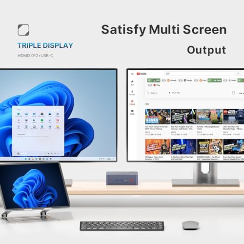 4K Triple Display Support: The mini PC supports stunning 4K UHD visuals across three screens via dual HDMI and Type-C ports, perfect for professional workflows and multimedia tasks.